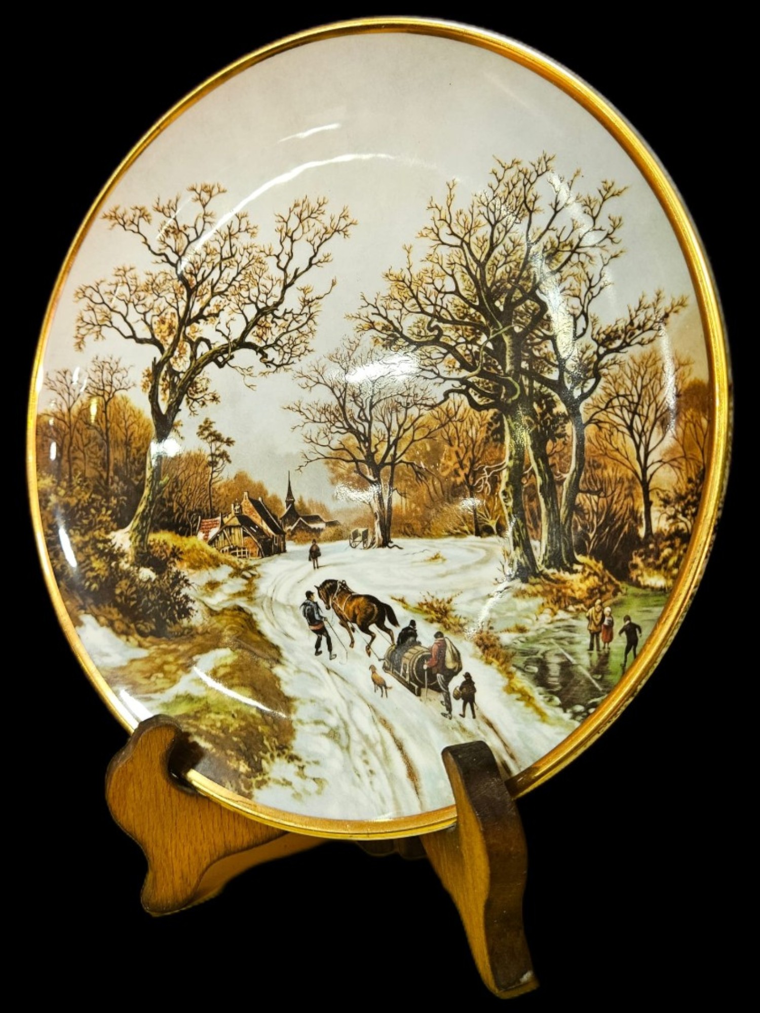 Ünlü Hollandalı sanatçı B.C.Koekkoek’in (1803-1862) resimlerinden esinlenen bu zarif porselen tabak, 19. yüzyılın dingin güzelliğini yakalar. Tabak, İngiliz ince çini işçiliğinin zamansız zarafetini yansıtır. . Figürlü evler ve atlı kızaklarla karla kaplı bir kırsalı tasvir eden sanat eseri, sıcaklık ve nostaljiyi çağrıştırarak onu klasik iç mekanlar, şömine rafları veya koleksiyoncu dolapları için mükemmel bir sergileme parçası haline getirir Kış Manzarası Sanat Eseri, bu zarif ve etkileyici koleksiyon parçasıyla Avrupa sanat tarihinin bir parçasını evinize getiriyor.