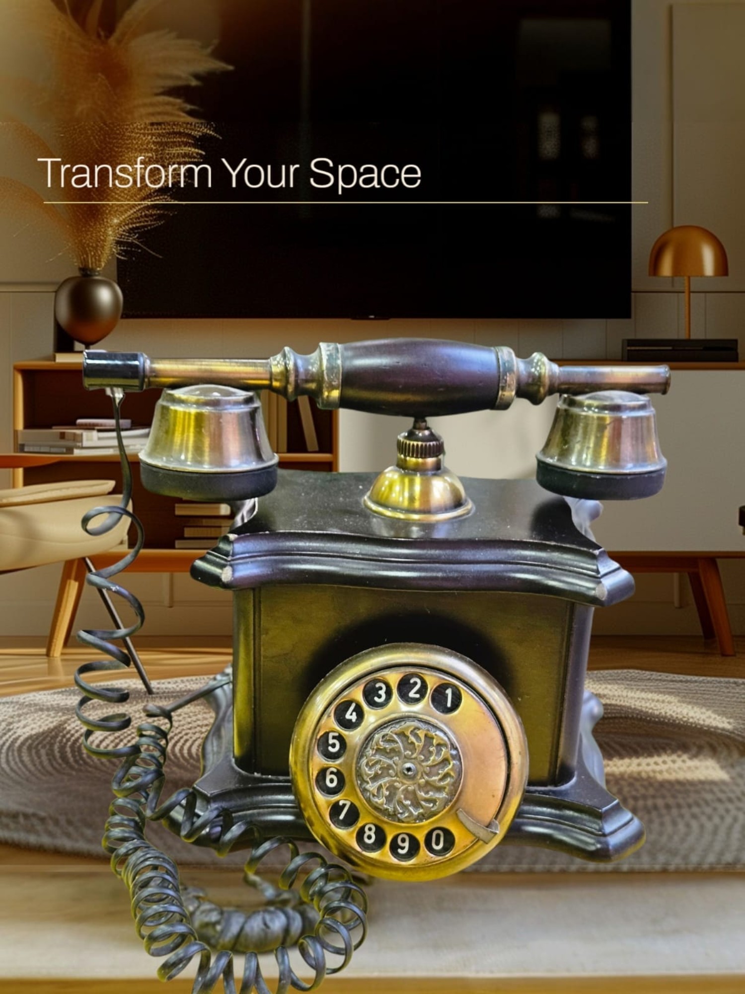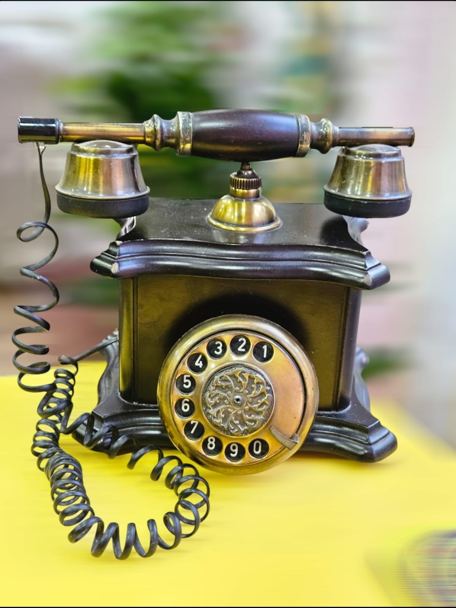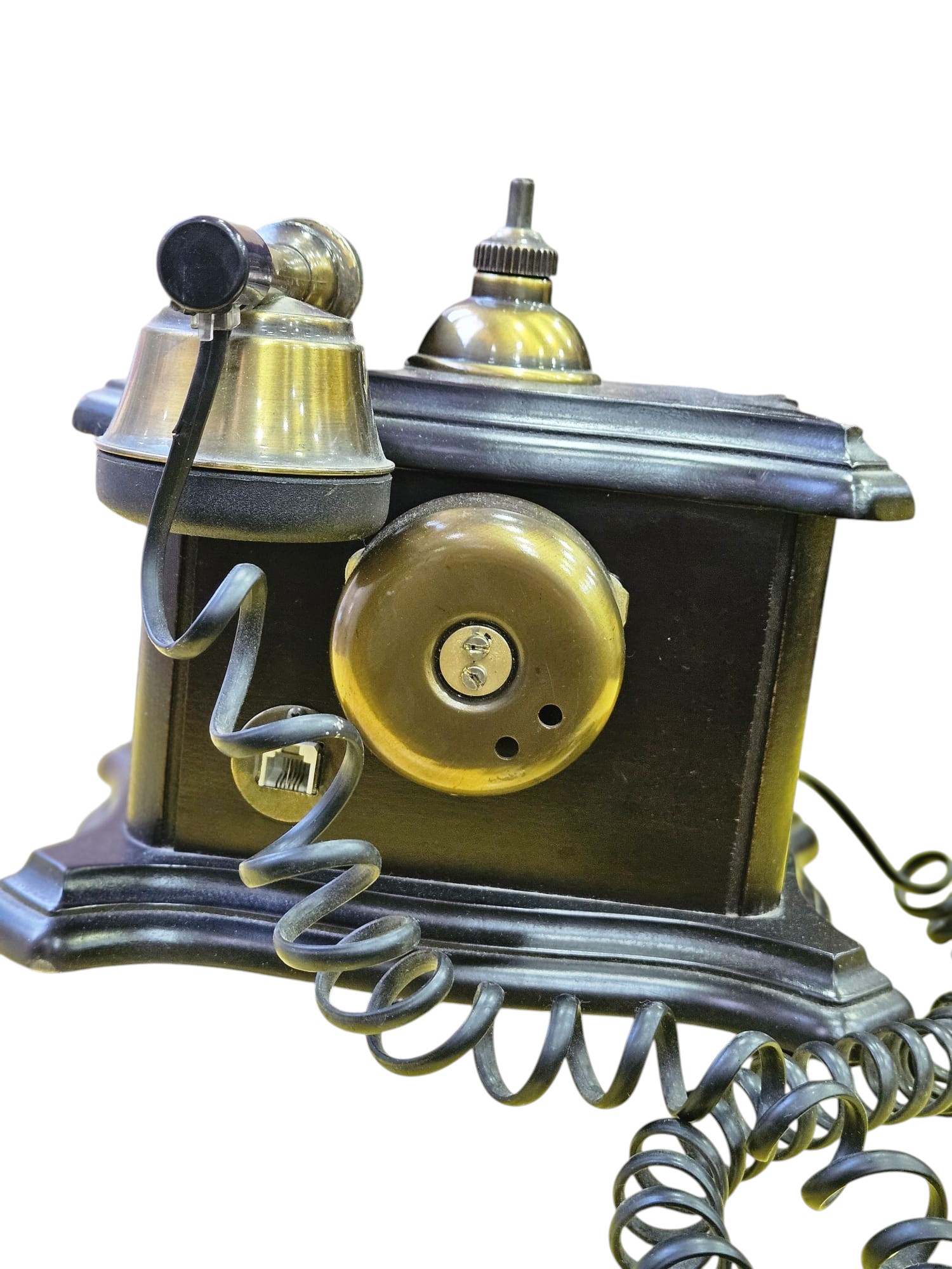 Bu nostaljik döner kadranlı telefon, 1900’lü yılların başından esinlenen klasik bir tasarıma sahiptir. . Ahşap ve pirinç gövdesiyle dekoratif bir zarafet sunar. . Orijinal dönem estetiğini yansıtan bu model, hem koleksiyonluk bir üründür hem de vintage dekorasyonlarda göz alıcı bir unsurdur. Bu parça dekorasyon amaçlı kullanıma uygundur ve işlevi test edilmemiştir.