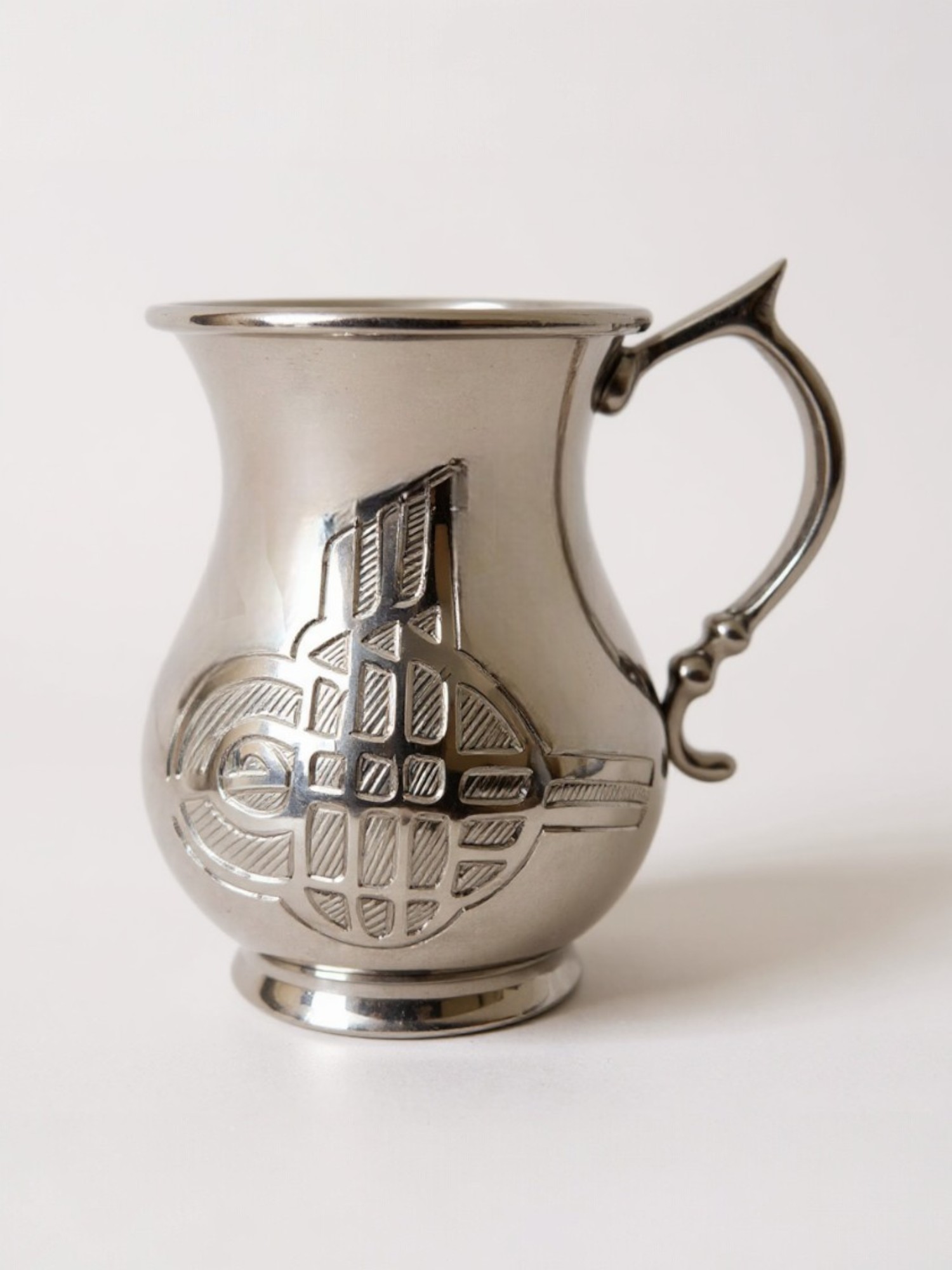 İç kısmı kalay kaplı dayanıklı bakır gövdesi, içeceklerin doğal tadını korurken güvenli kullanım sağlar. Parlak nikel kaplamalı dış yüzeyi ise lüks ve zarif bir görünüm sunarak hem günlük kullanım hem de özel günler için mükemmeldir.